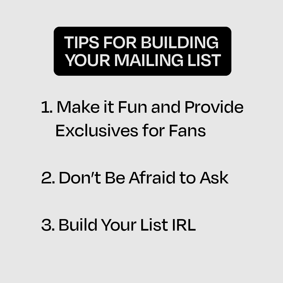 Traditional promotional mailing lists often feel like a constant sales pitch, which most people don’t appreciate. That’s why we love platforms like Substack or BeeHiiv, which provide a more engaging experience filled with unique content that excites fans about joining your mailing list.